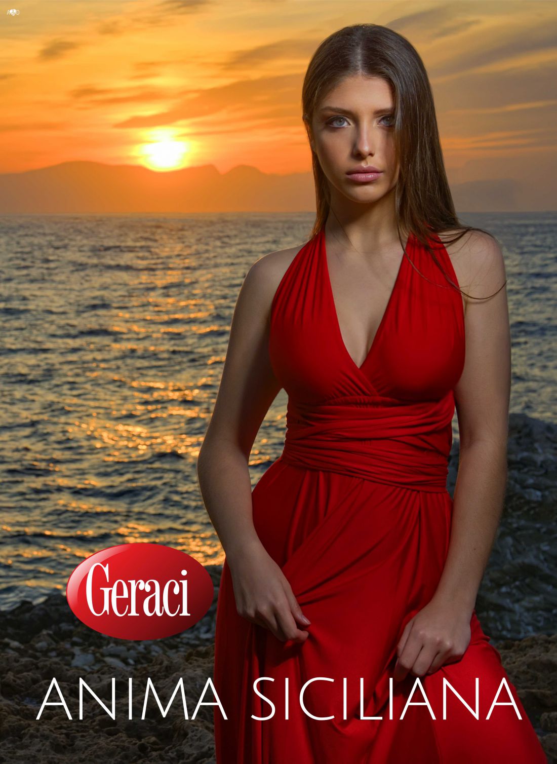 Progettazione e realizzazione di una immagine che comunichi la territorialità dell'Acqua Geraci attraverso un immagine evocativa dove è fortemente presente l'elemento siciliano nei tratti della modella e nella location.