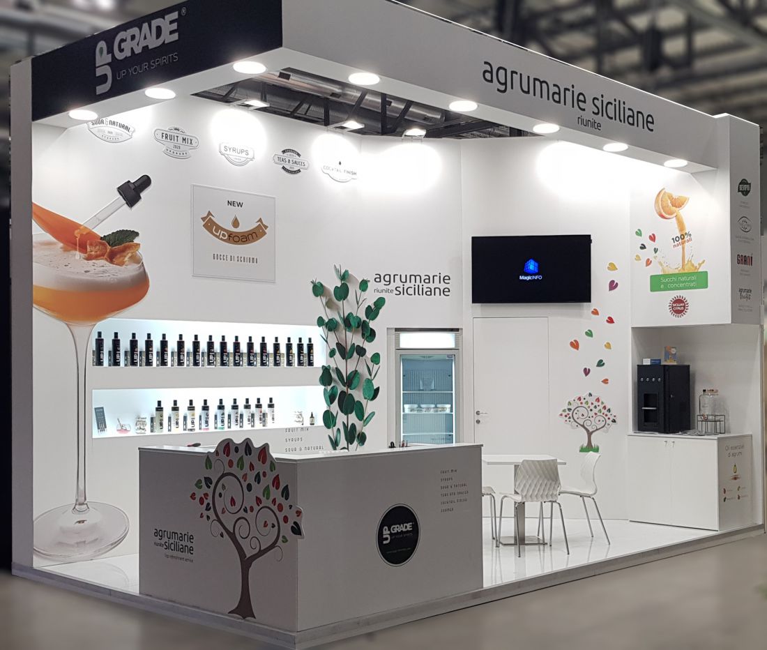 Progettazione grafica e tecnica di uno stand per Agrumarie Riunite Siciliane con partecipazione del brand Upgrade di proprietà dell'Azienda.